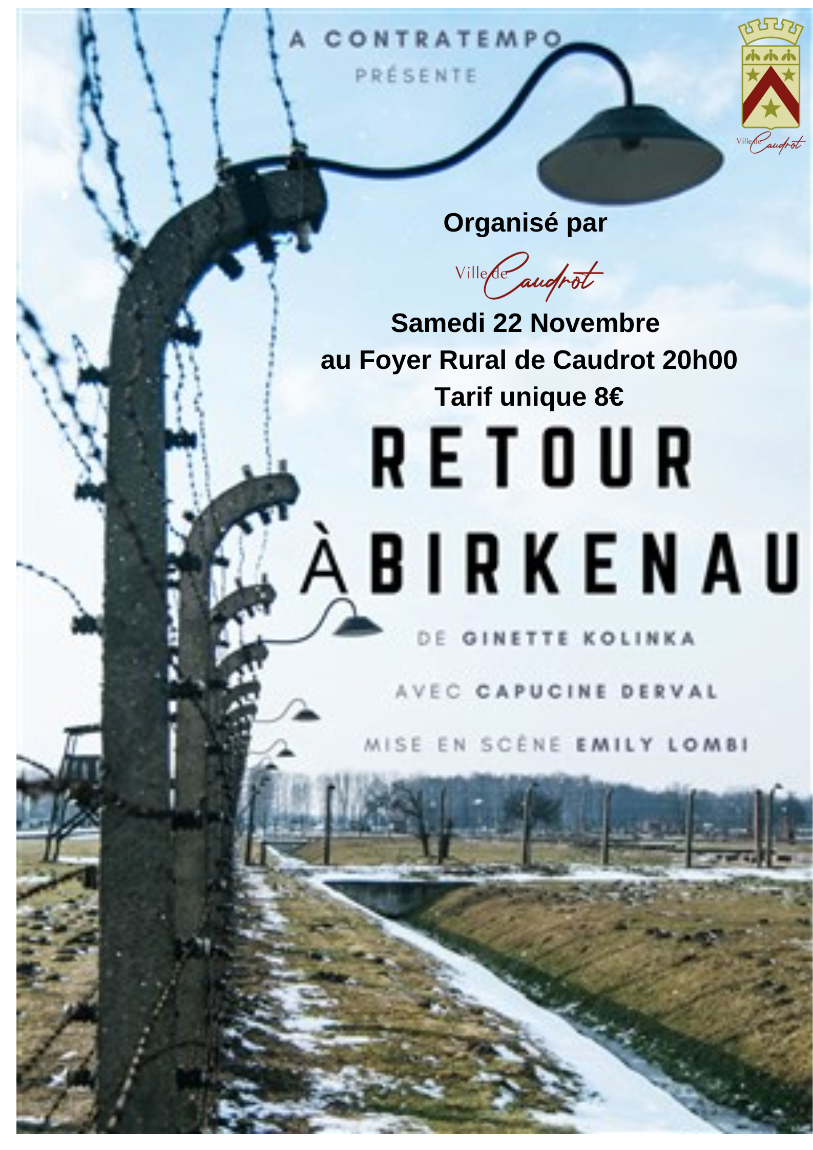 Le samedi 22 novembre, à 20h, la mairie de Caudrot proposera au Foyer Rural la pièce de théâtre RETOUR A BIRKENAU.